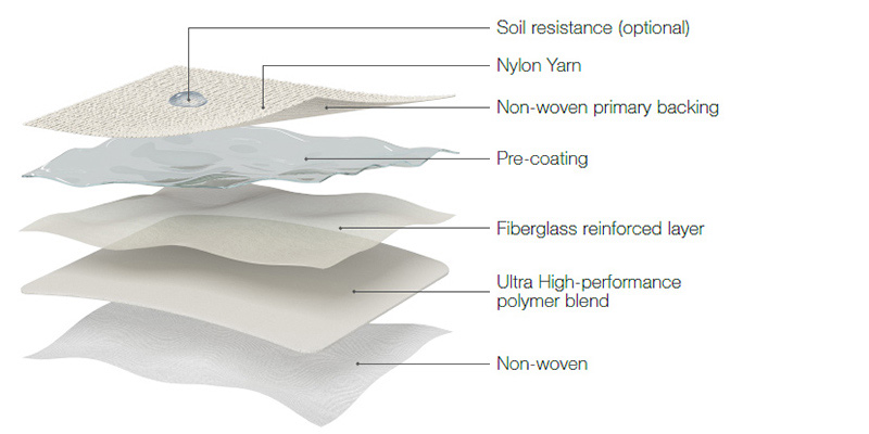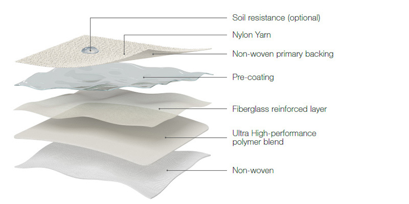 3. Alta calidad. Mejora la flexibilidad de la alfombra y reduce su arqueo y encorvamiento. Al mismo tiempo, posee una excelente estabilidad dimensional.
