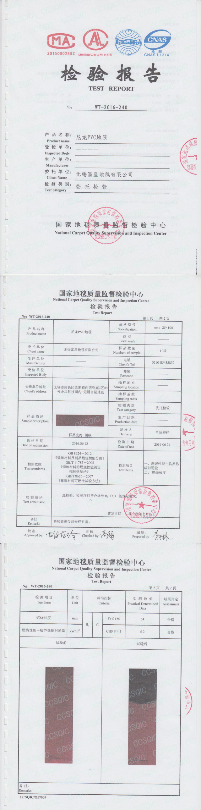 尼龙PVC地毯防火检测